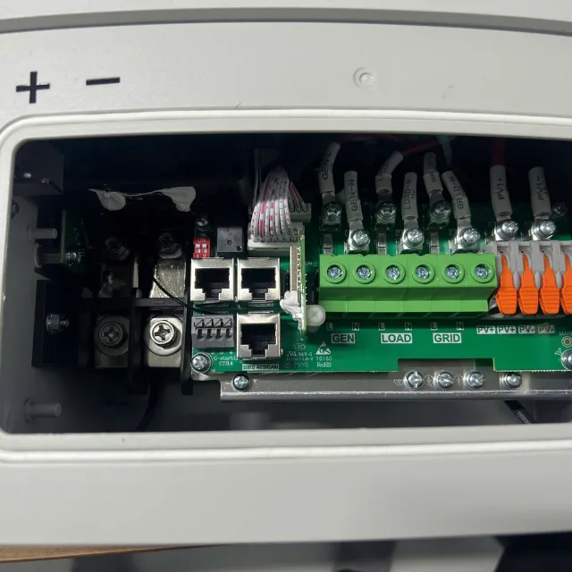 - Cho phép cấu hình dòng sạc pin linh hoạt trực tiếp trên màn hình LCD, phù hợp nhiều loại pin và tối ưu tuổi thọ lưu trữ. Thiết bị hỗ trợ giám sát từ xa, đồng thời tích hợp sẵn MPPT giúp tối đa hóa sản lượng điện và nâng cao hiệu suất hệ thống.