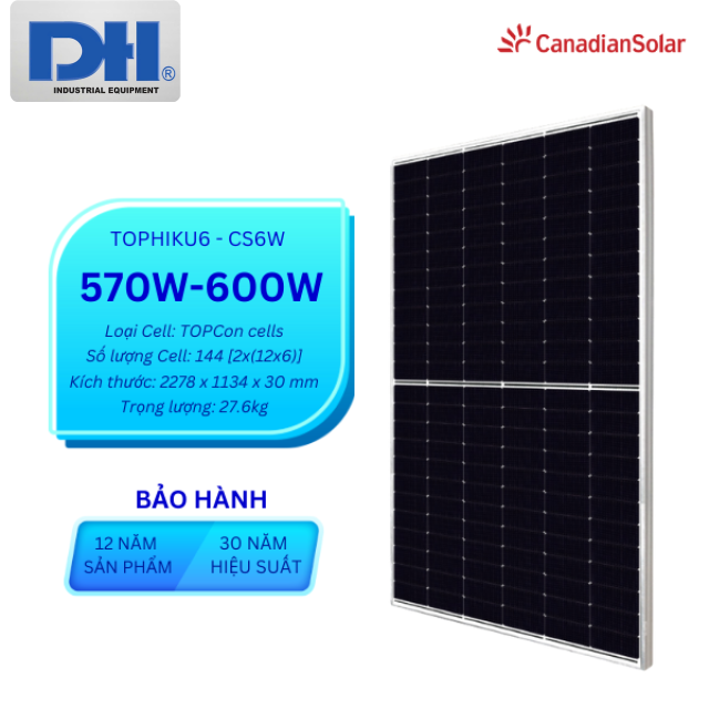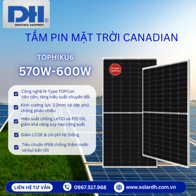 - Nhà phân phối chính hãng: Solar DH cam kết cung cấp sản phẩm Canadian Solar chính hãng 100% từ, đảm bảo chất lượng, hiệu suất và bảo hành đầy đủ.