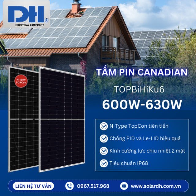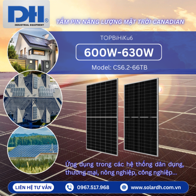 Nếu bạn quan tâm đến sản phẩm tấm Pin mặt trời Canadian 620W TOPBiHiKu6, hãy liên hệ ngay với Solar DH để được tư vấn và nhận báo giá tốt nhất.