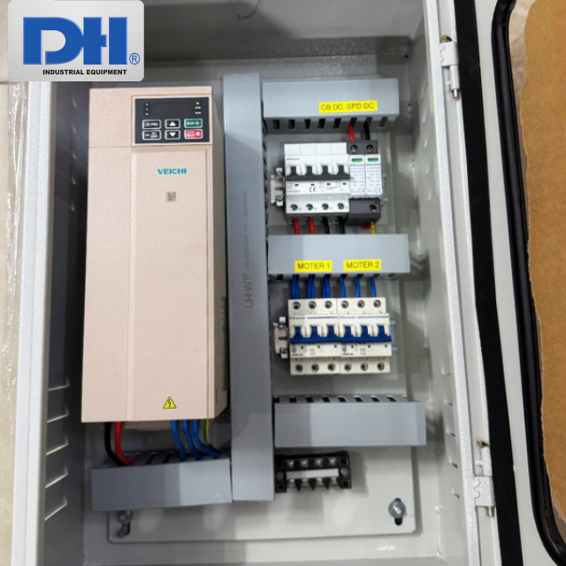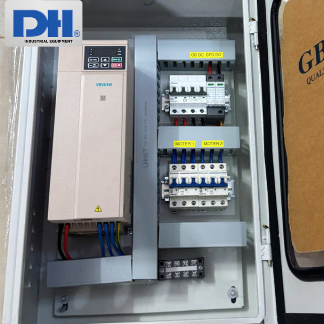 - Tủ điện biến tần bơm 11kW 3 pha Veichi được Solar DH đấu nối sẵn, giúp việc lắp đặt nhanh chóng, tiện lợi.