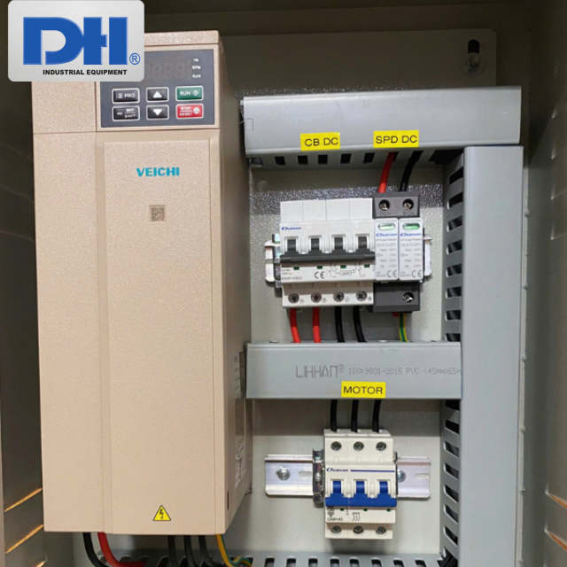- Tủ điện biến tần bơm 7.5kW 3 pha Veichi được Solar DH đấu nối sẵn, giúp việc lắp đặt nhanh chóng, tiện lợi.