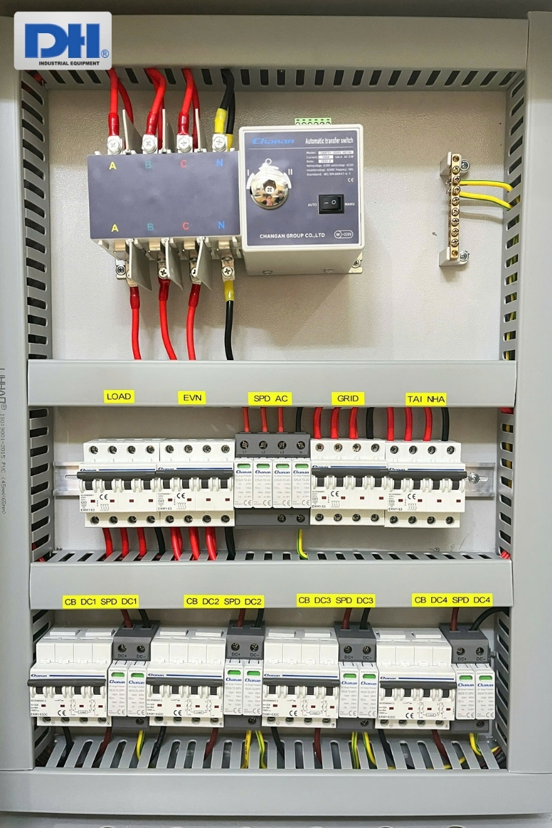 - Thiết bị chất lượng, đầy đủ tính năng bảo vệ: Kết hợp CB, SPD và ATS giúp hệ thống mặt trời hoạt động an toàn và ổn định lâu dài.