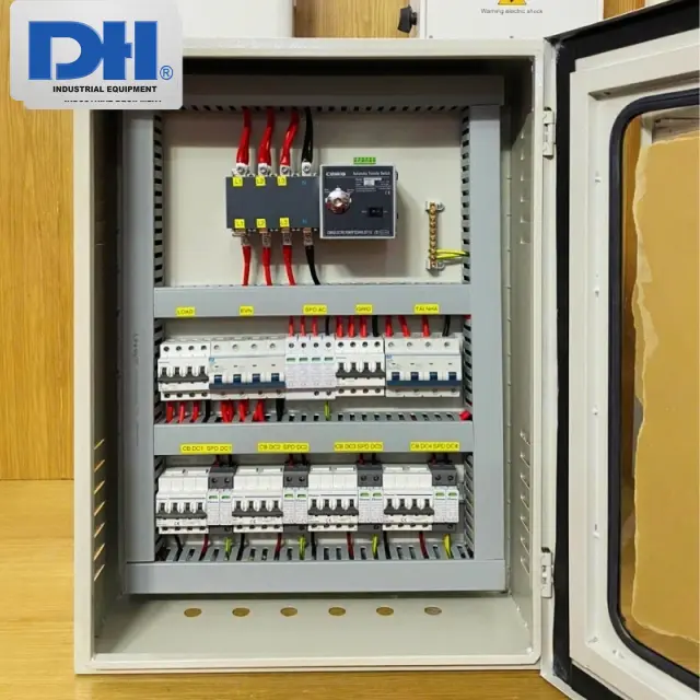 Tủ điện Solar Hybrid 20kW 3 pha, là lựa chọn lý tưởng cho các công trình và dự án quy mô vừa và lớn. Đảm bảo hệ thống điện mặt trời hoạt động ổn định, tránh các nguy cơ cháy nổ hay sét đánh.