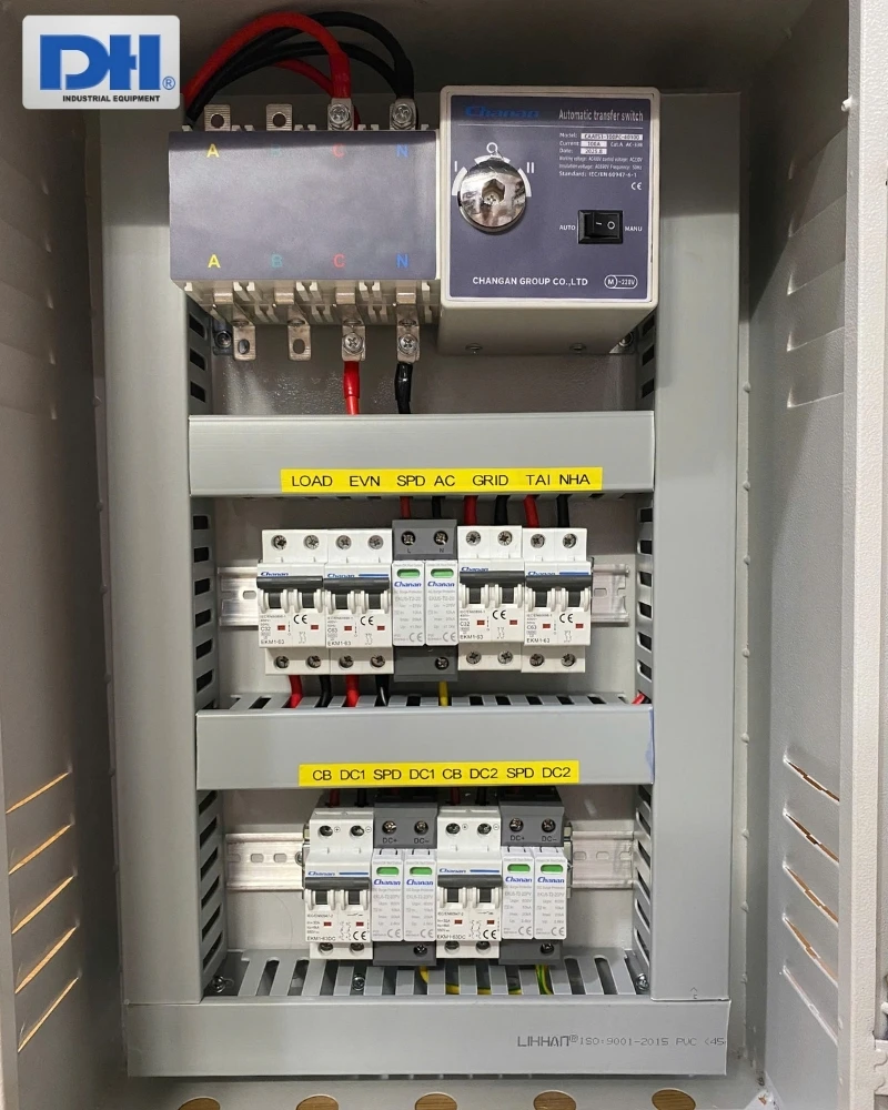 - Tủ điện năng lượng mặt trời được kỹ thuật Solar DH đấu nối sẵn, gọn gàng và đẹp mắt phù hợp với không gian lắp đặt.